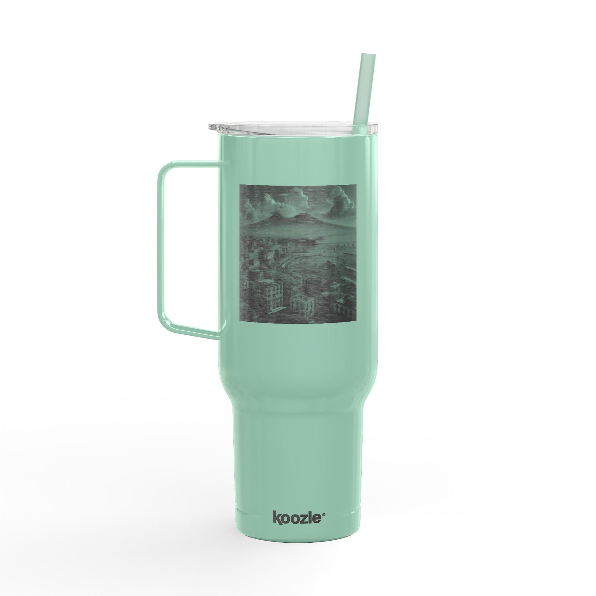 Perfect for long road trips, this big 40 oz. tumbler is made of 90% recycled stainless steel and comes with a 100% recycled plastic, press-fit slider lid and a matching straw. The double-wall vacuum insulation keeps drinks hot or cold for hours, while the large comfort handle and tapered base make transporting this tumbler a breeze.